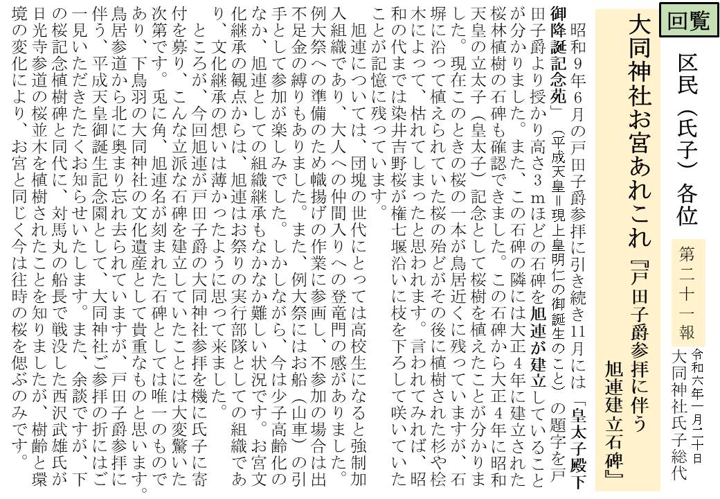 戸田子爵参拝に伴う旭連建立石碑