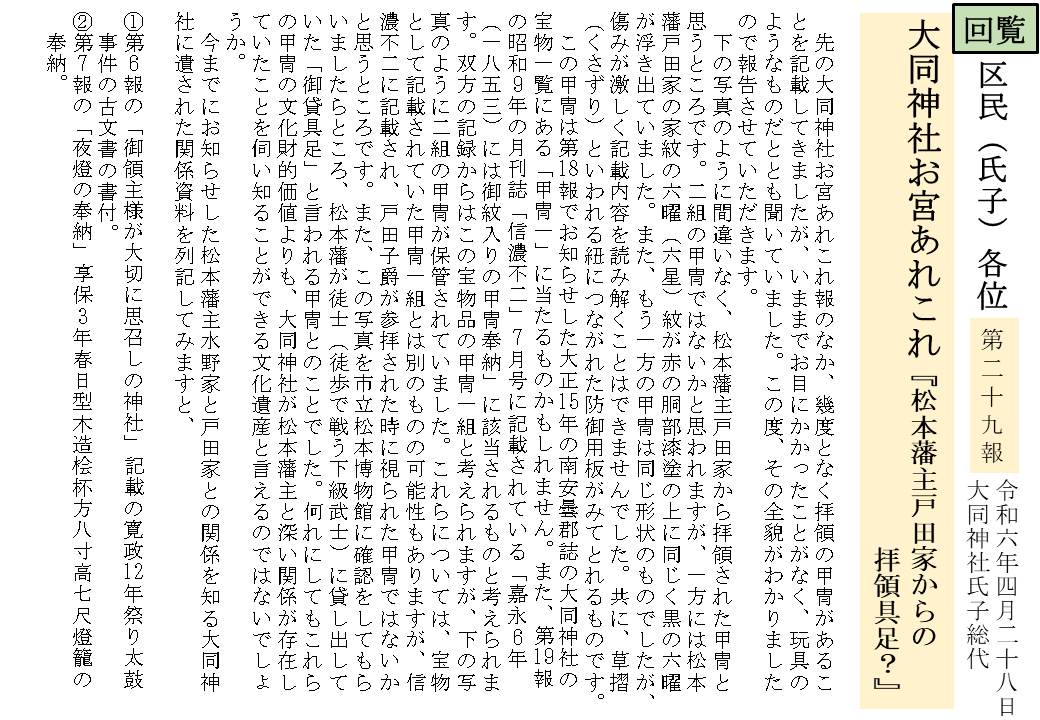 松本藩主戸田家からの拝領具足